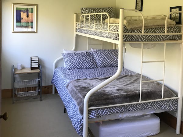 The 3rd bedroom is a cosy room featuring a double bunk (double bed on the bottom and single on the top) and optional single trundle, sleeping up to 4 people. This room is perfect as a children's room, a 3rd couple or a family room with 2 adults and 2 children.